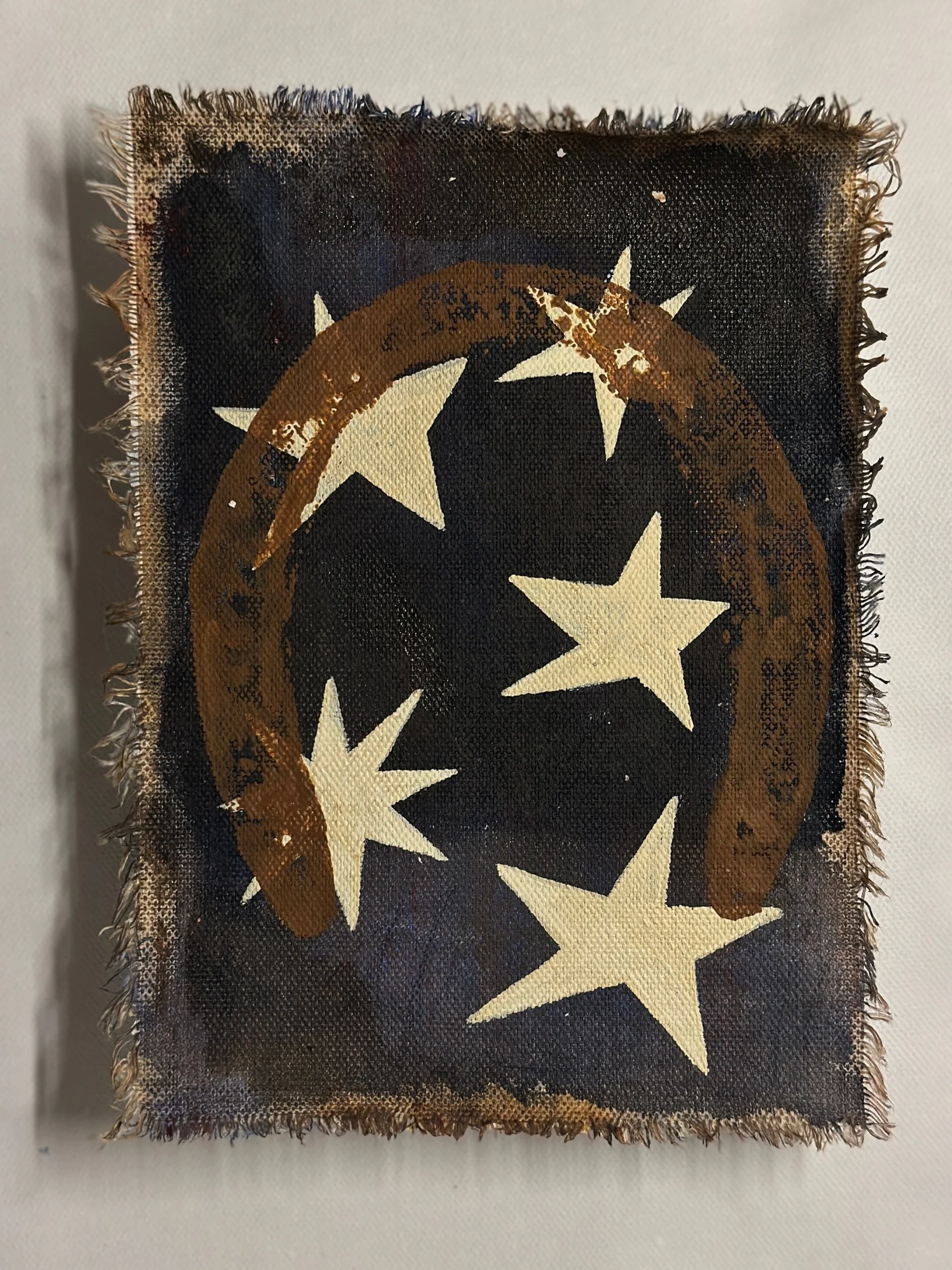 rodeo stars .39 $75.00 sold out mixed media original painting on raw unstretched canvas, unframed5.5 × 7 shop › rodeo stars .39 Sold Out Added! mixed media original painting on raw unstretched canvas, unframed5.5 × 7